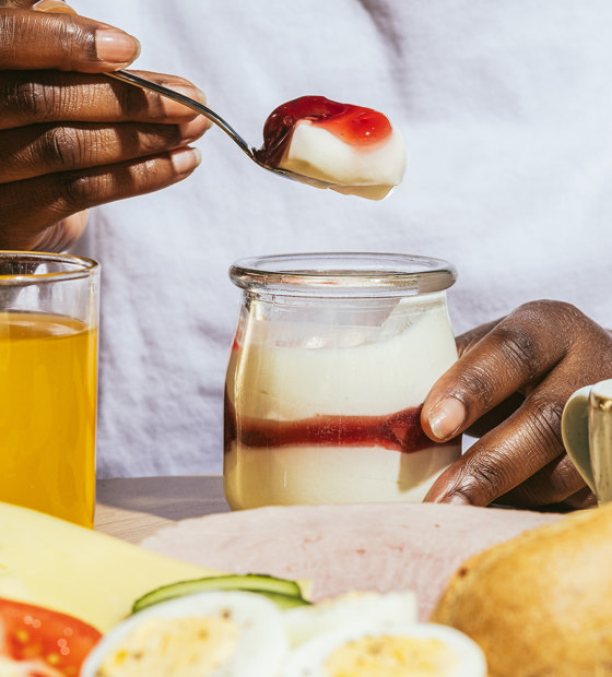 You’ll still find all the good stuff: sweet and savoury pastries (with vegan and gluten-free options), cereals, granola, yogurt, fresh fruit and hard-boiled eggs. Rolls with butter, jam or cheese, along with a refreshing selection of juices.