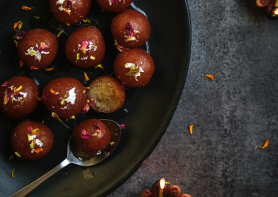 We usually finish the meal off with Diwali staple sweet treats including Ladoo which are sweet, round, and bite-sized confections made of flour, sugar, and ghee. Gulab Jamuns, soft, syrup-soaked doughnut-like balls made from khoya (milk solids). And finally, Kaju Katli: Diamond-shaped sweets made from cashews and sugar, offering a perfect blend of nutty flavours and sweetness.