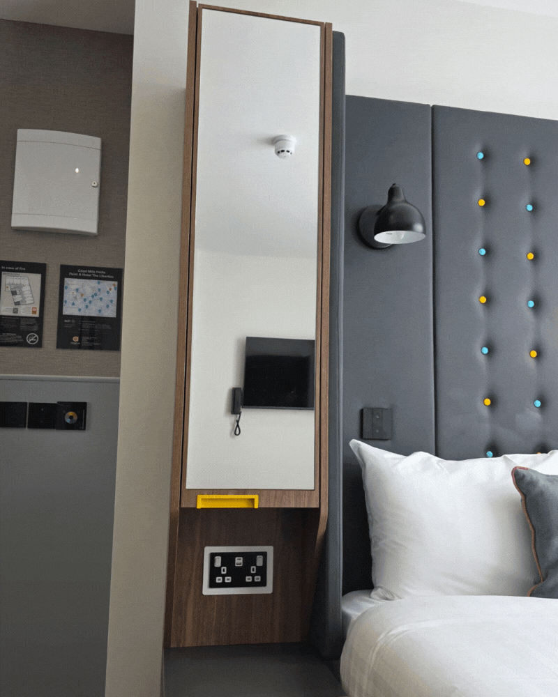 Looking for shelving? Surprise - it’s built into the mirrored bedside cupboard, complete with storage space and added plug sockets!